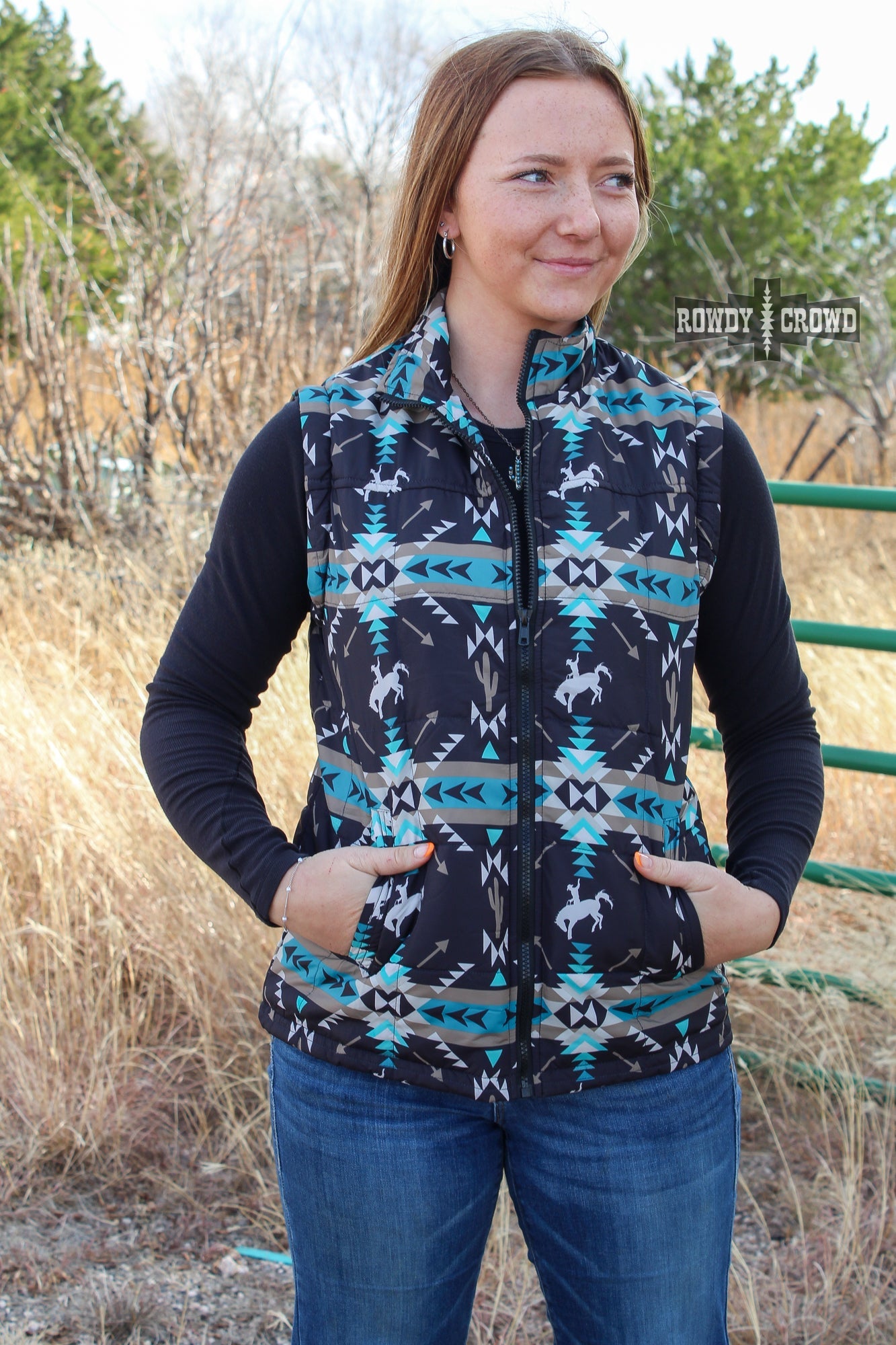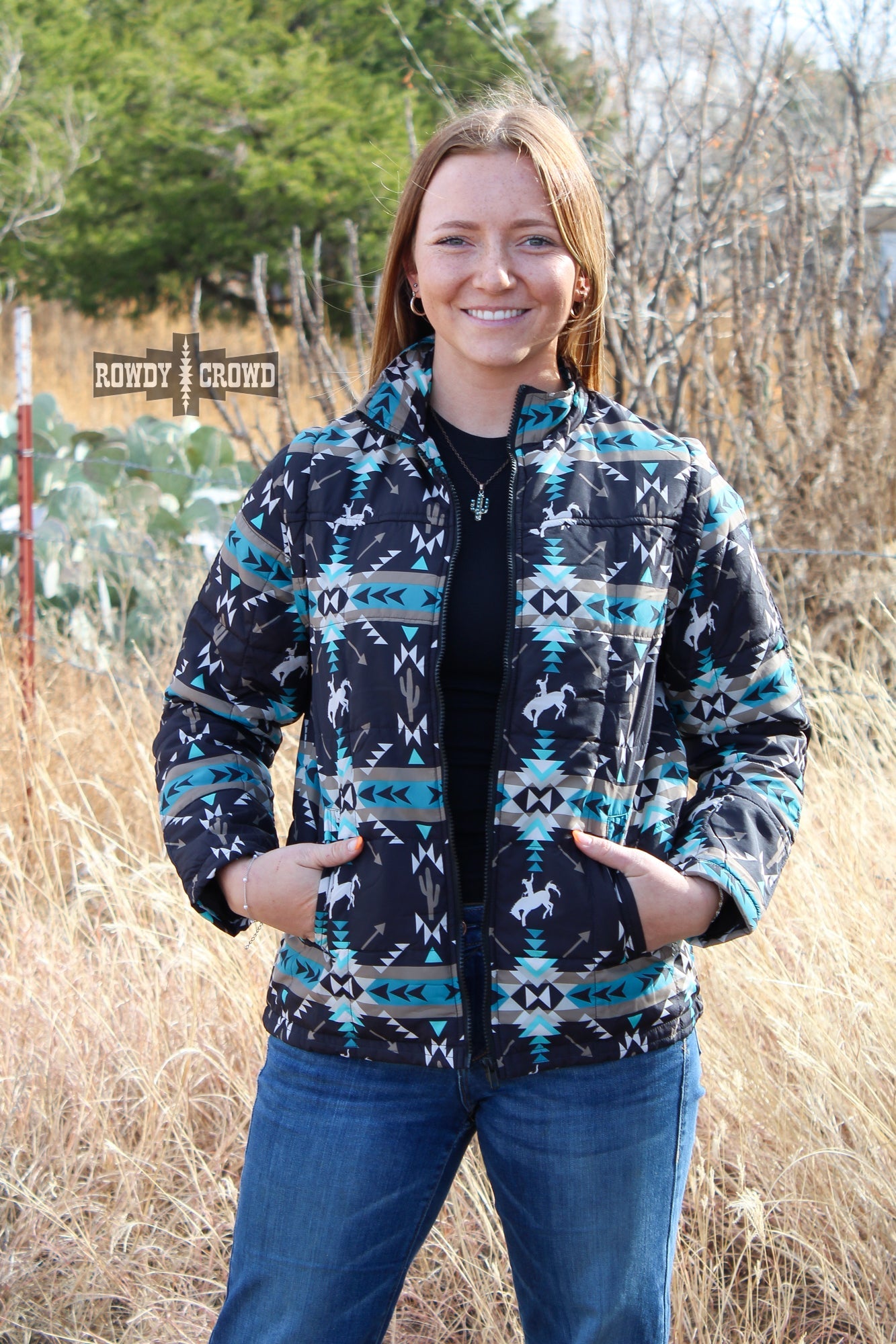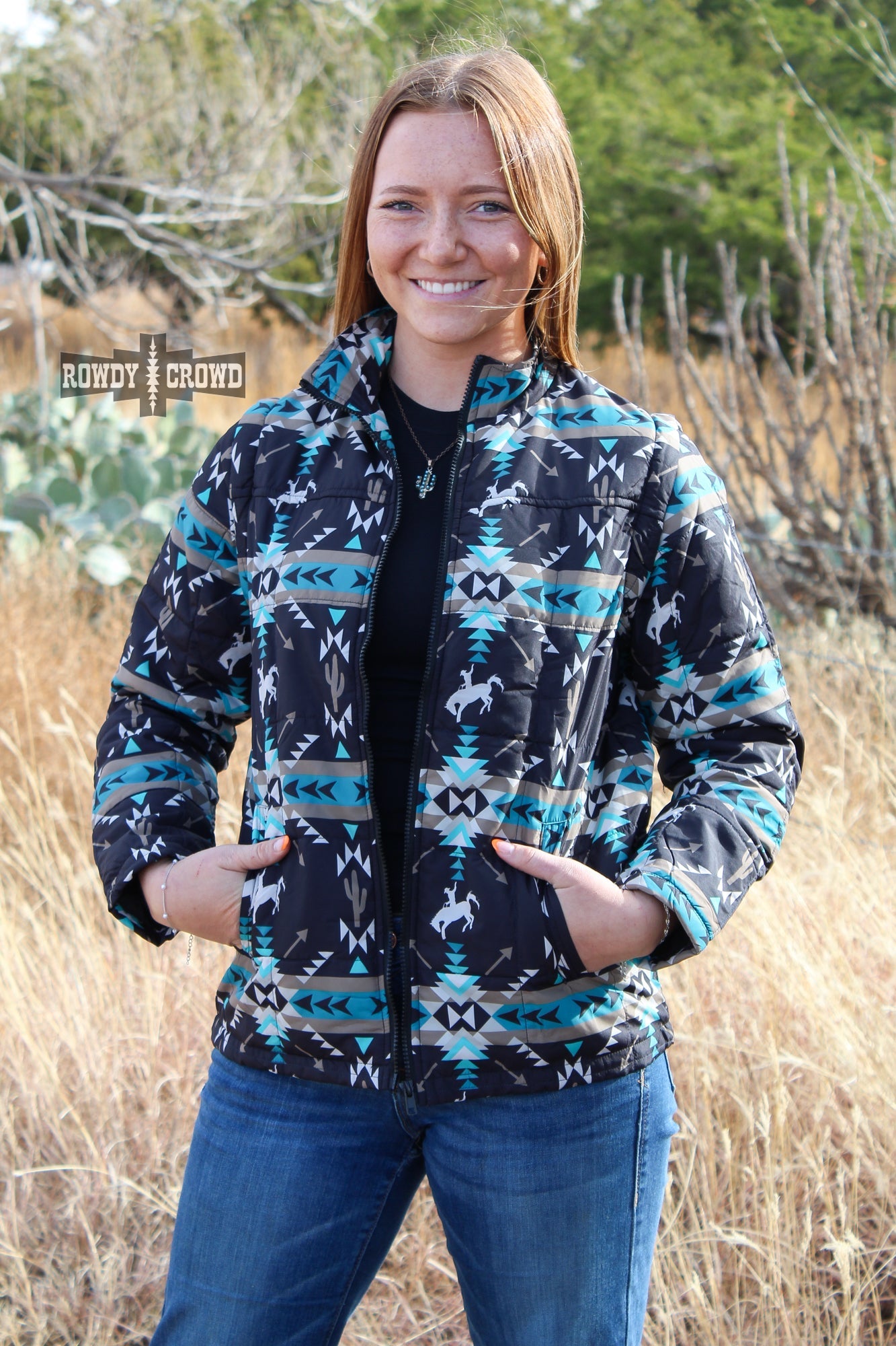We love a multipurpose item and The Buck Up Jacket just so happens to also be a vest. The bronc rider aztec pattern stands out on the black base to help you shine. The sleeves on this jacket are both removable by zipping them in and out to transform it from your favorite jacket to your favorite vest. Best part? This material is not only warm, but is super easy to clean.
