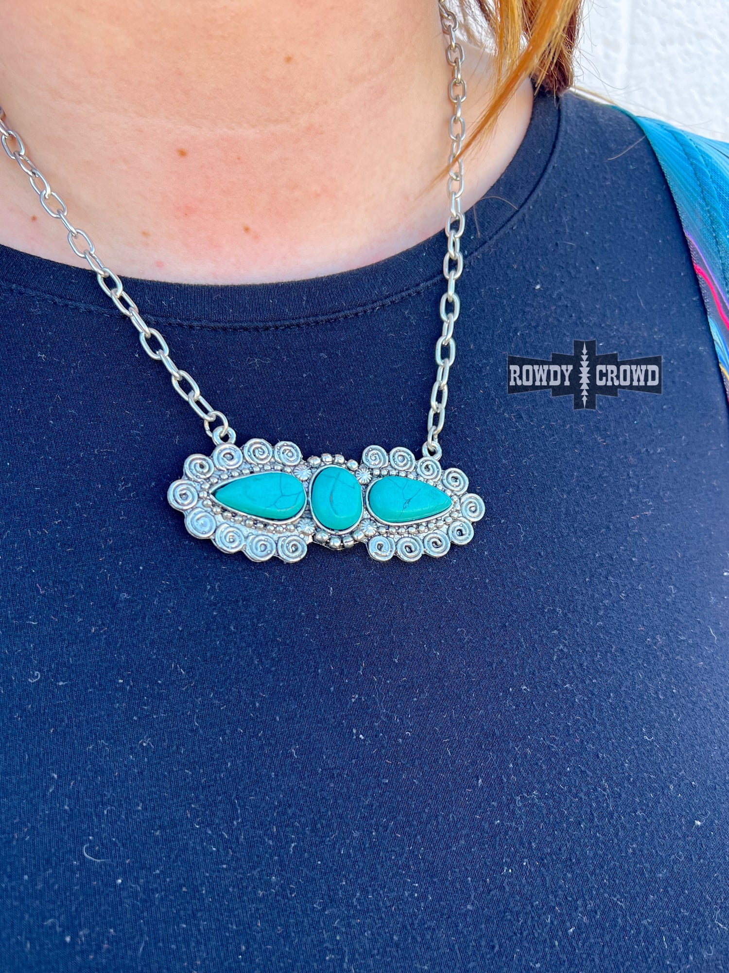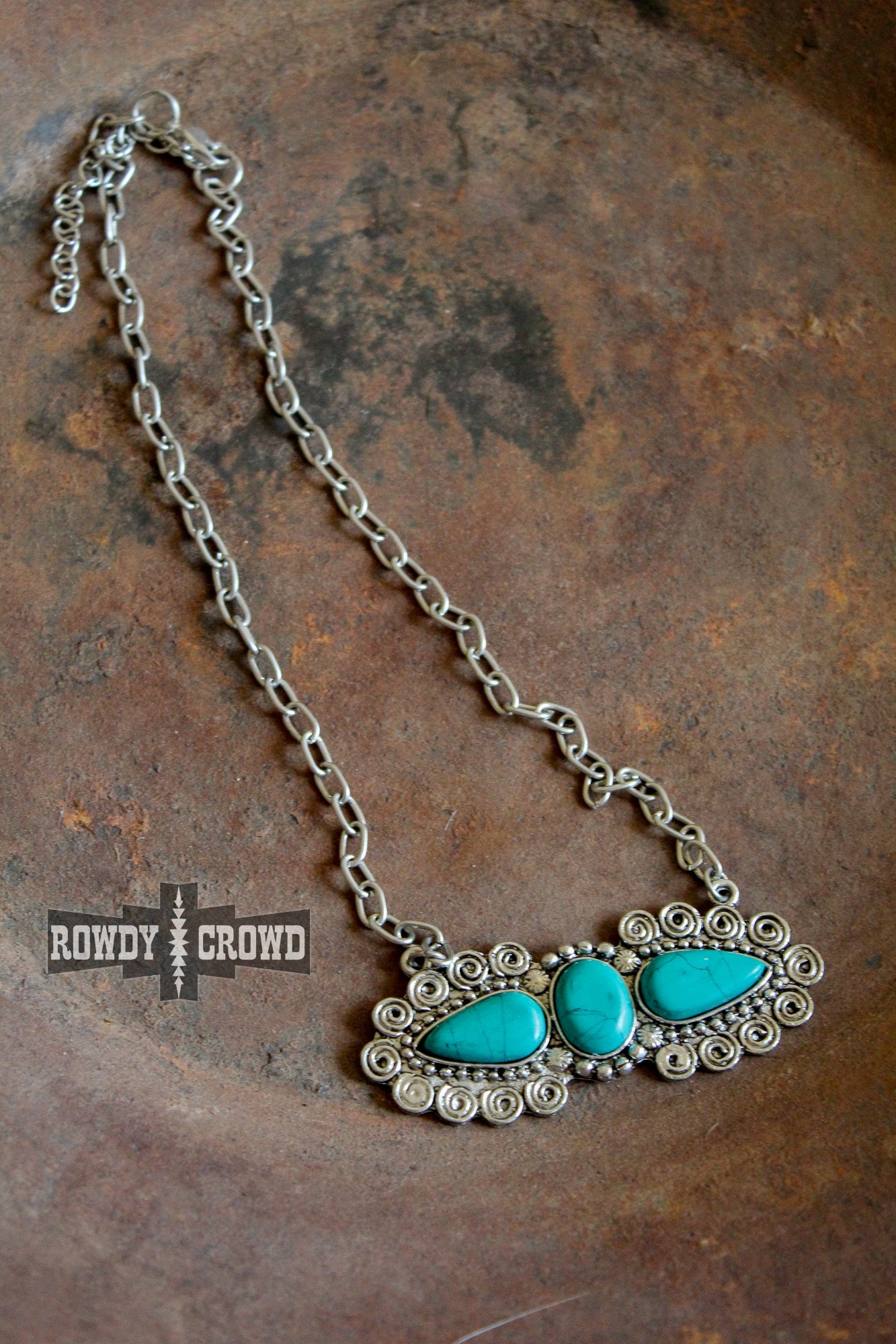 Bring the moonlight to your everyday style with the beautiful Dizzy Moon Necklace! Featuring a silver adjustable chain and adorned with three conchos, this stunning necklace is sure to be a show-stopper. Each conchos is engraved with delicate details and turquoise stones, making this piece truly one of a kind. Take your style to the moon and back!