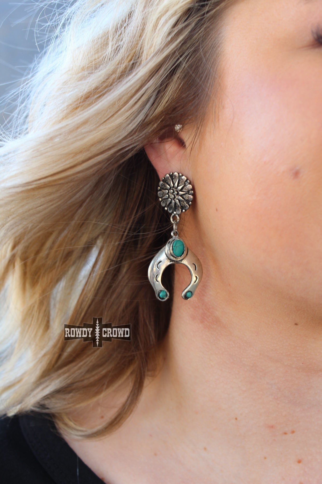 The Graceland Earrings bring the beauty of the southwest to your look. These handcrafted earrings feature a statement horseshoe drop with three beautiful turquoise stones and two stunning silver studs with intricate engraved designs. Make your style come alive with Graceland earrings!