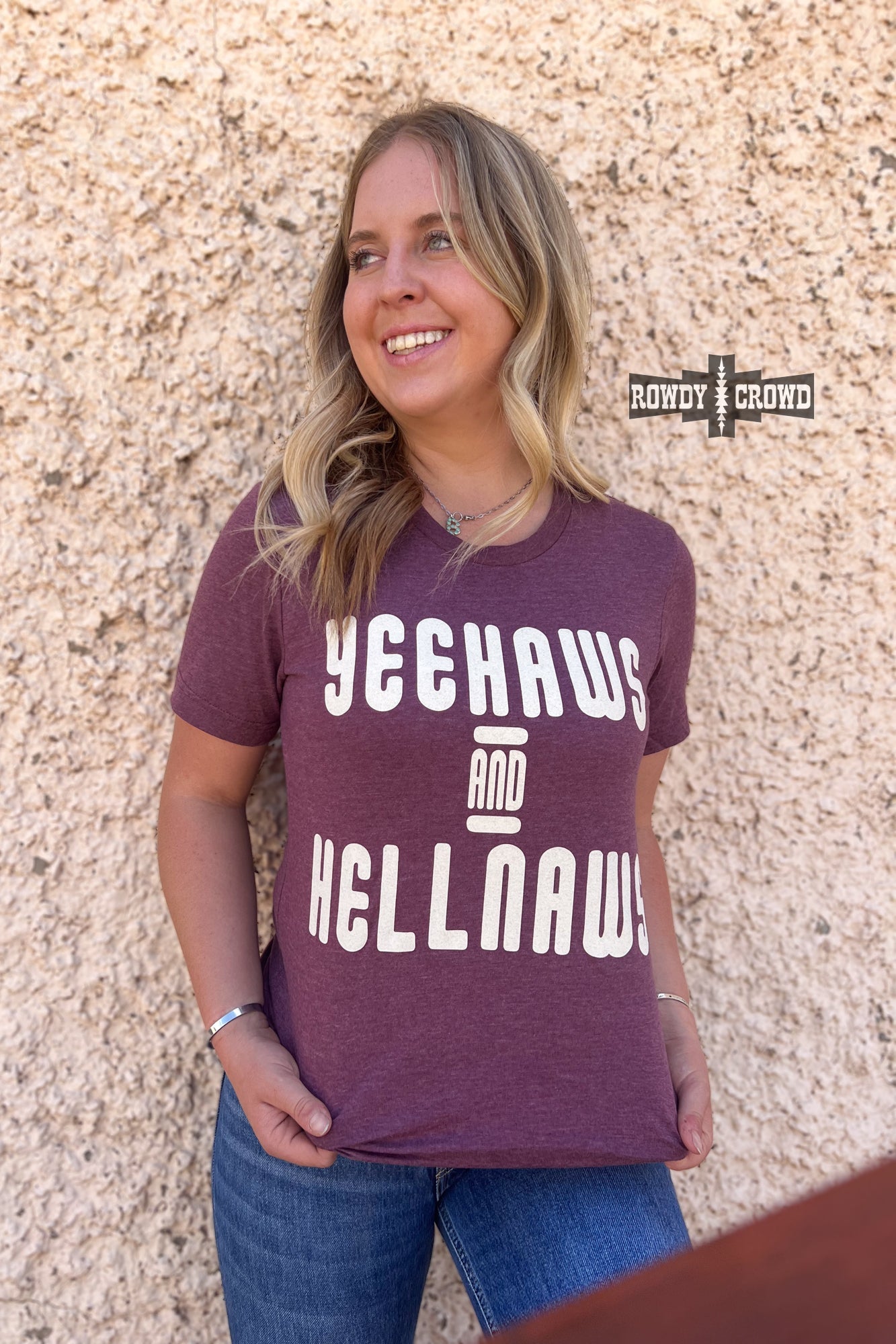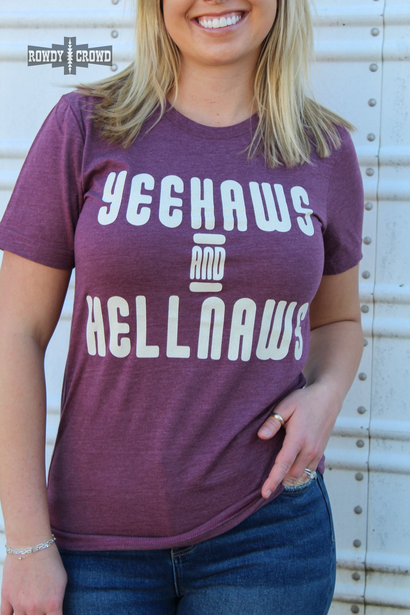 western apparel, western graphic tee, graphic western tees, wholesale clothing, western wholesale, women's western graphic tees, wholesale clothing and jewelry, western boutique clothing, western women's graphic tee, yeehaws graphic tee, yeehaw, hellnaw, maroon graphic tee