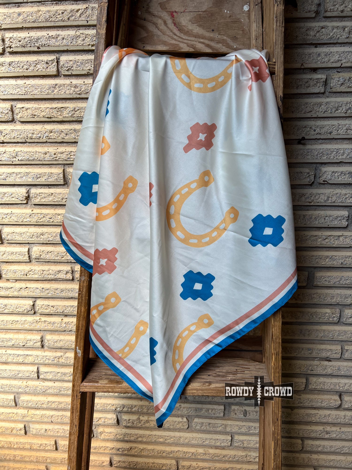 Unleash your wild side with the Lucky Wild Rag! This cute accessory features a horse shoe print and a shiny finish that will make you stand out. Wear it as a top, in your hair, or on your bag for a versatile and stylish look. Show off your passion for all things untamed with the Lucky Wild Rag!