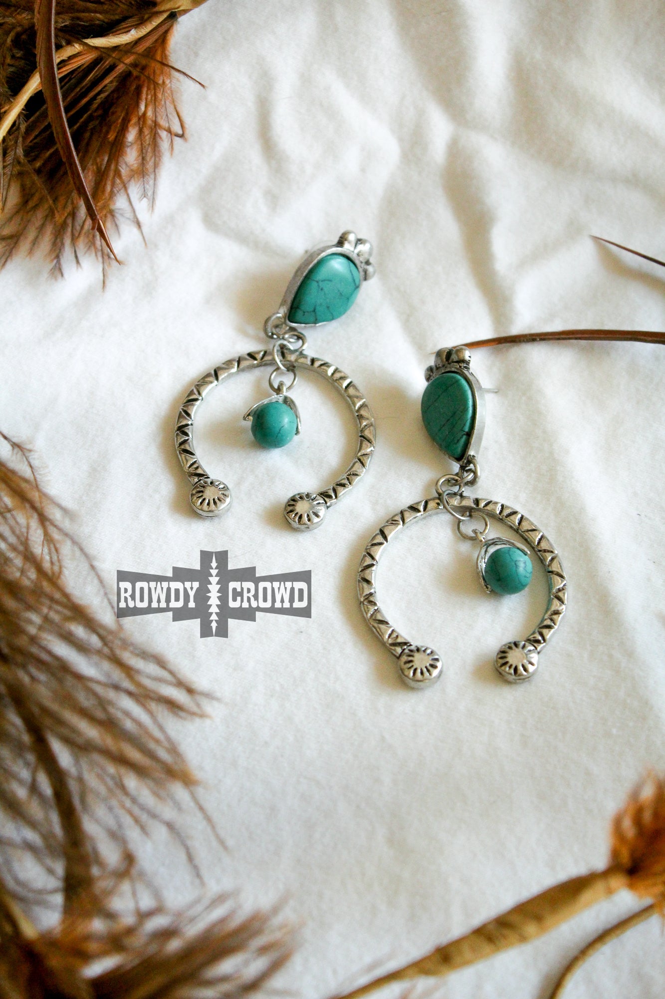 Our Moonshine Earrings feature a teardrop-shaped turquoise stud, adorned with a silver semi-circle intricately engraved with Aztec-inspired designs. Dropping gracefully from the semi-circle, a captivating turquoise drop ball adds a touch of allure and movement to these artisanal earrings.