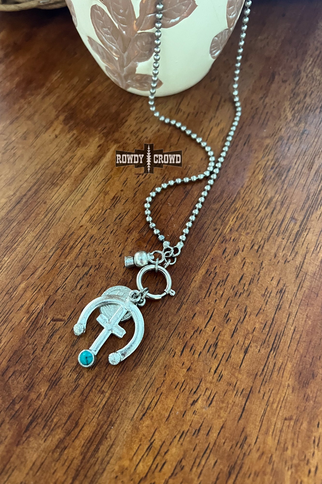 Add a classy western look to any outfit with our Nellie Necklace. With a unique design of a silver beaded chain and a drop pendant featuring a circular coin piece, with naja's and a turquoise stone!