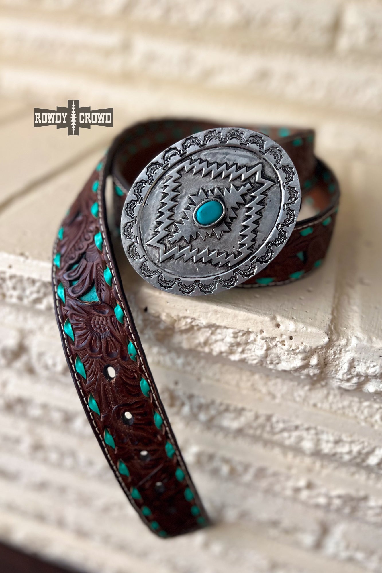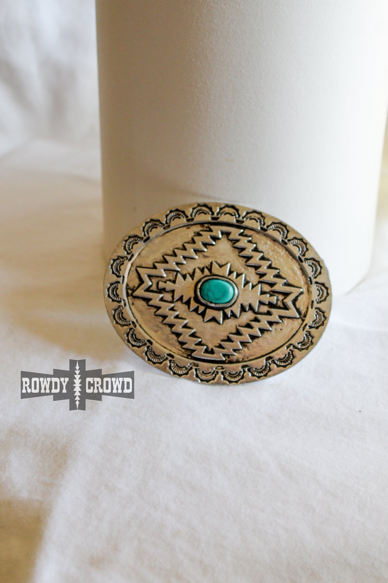 Make a statement with this stunning Palmetto Belt Buckle! Impressive engravings of aztec geometric designs, combined with a beautiful oval turquoise stone, adorn this belt buckle for a bold and eye-catching look. Add a touch of style and sophistication to your look with this unique belt buckle!