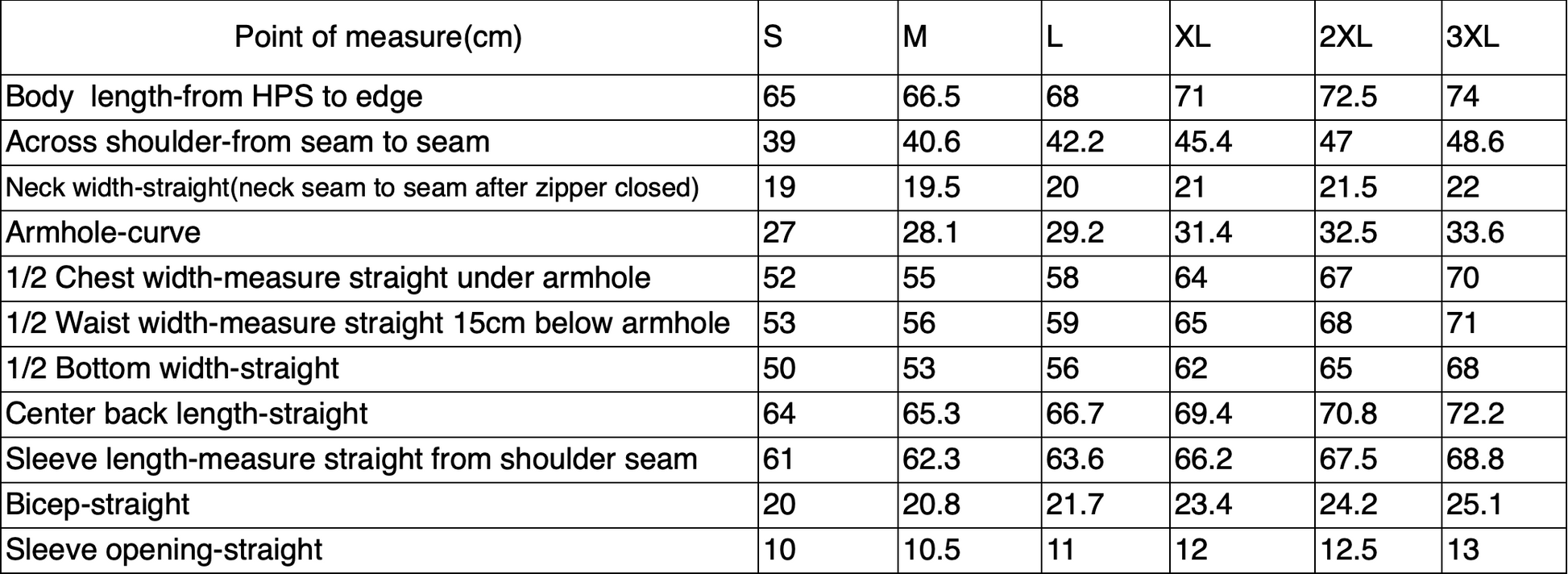Sizing chart in pictures.