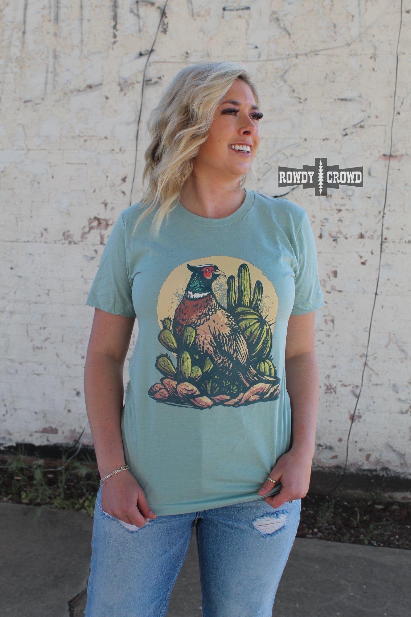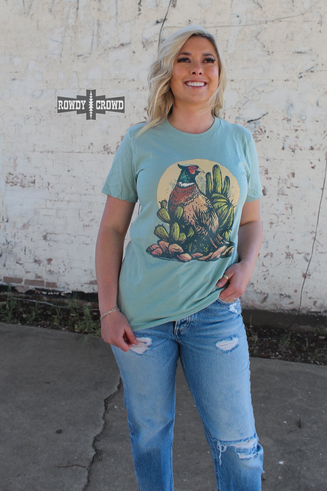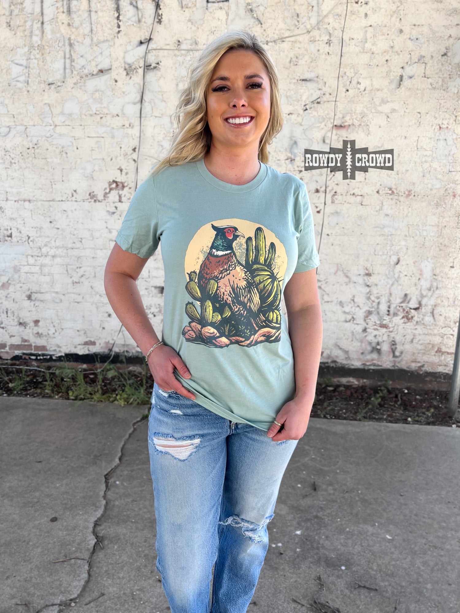 Get ready to take a walk on the wild side with our Pheasant Run Tee! The playful cactus and pheasant print will add a touch of fun to any outfit. Made to fit true to size, stay comfortable while looking effortlessly stylish. True to size, unisex fit.