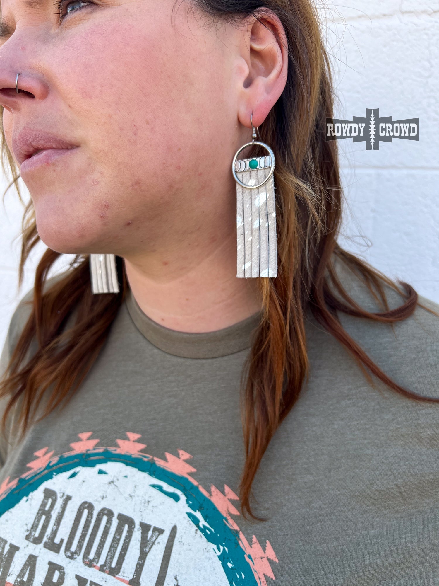 Add a touch of Western style to your look with the Richmond Earrings. Crafted from cowhide fringe and a turquoise stone, these drop earrings are sure to make a statement. Elevate your look with a timeless combination of style and elegance. Captivate the room with these stunning earrings!