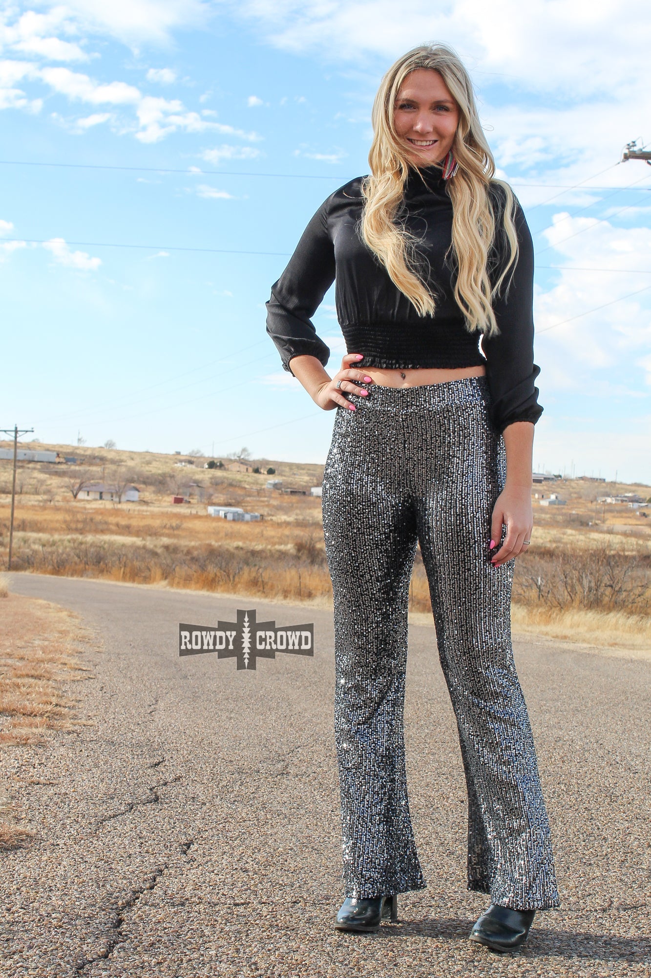 Experience effortless style with these Seminole Sequin Pants. Boasting a unique black sequin design and a stretchy waistband, they offer comfort and flexibility, perfect for any occasion. Make a statement and show your personality with this must-have fashion piece.