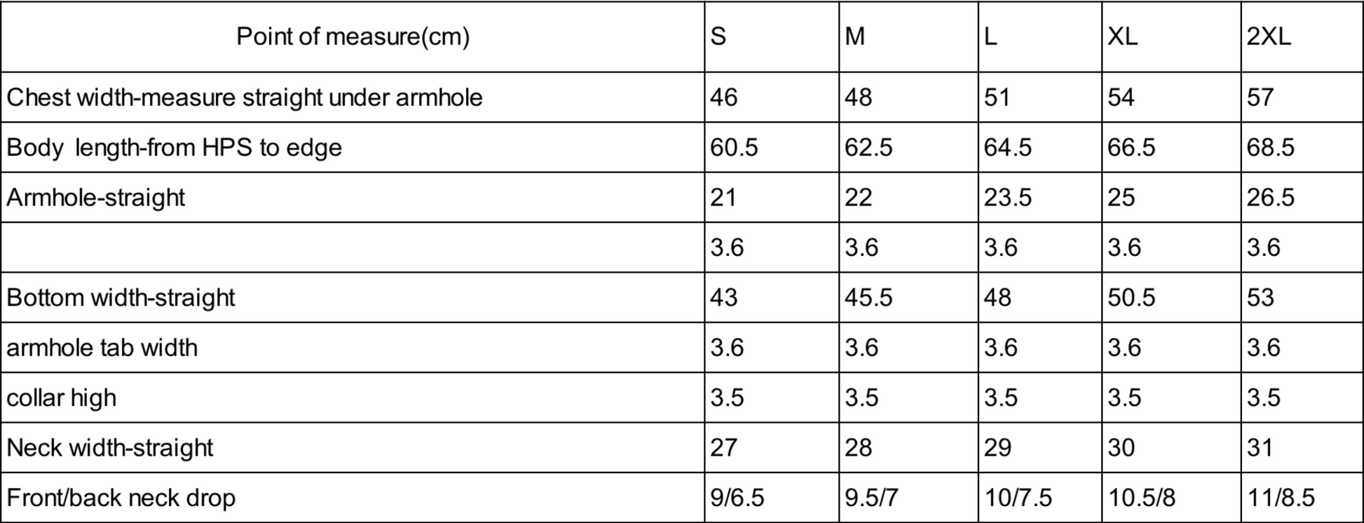 Sizing chart in pictures.