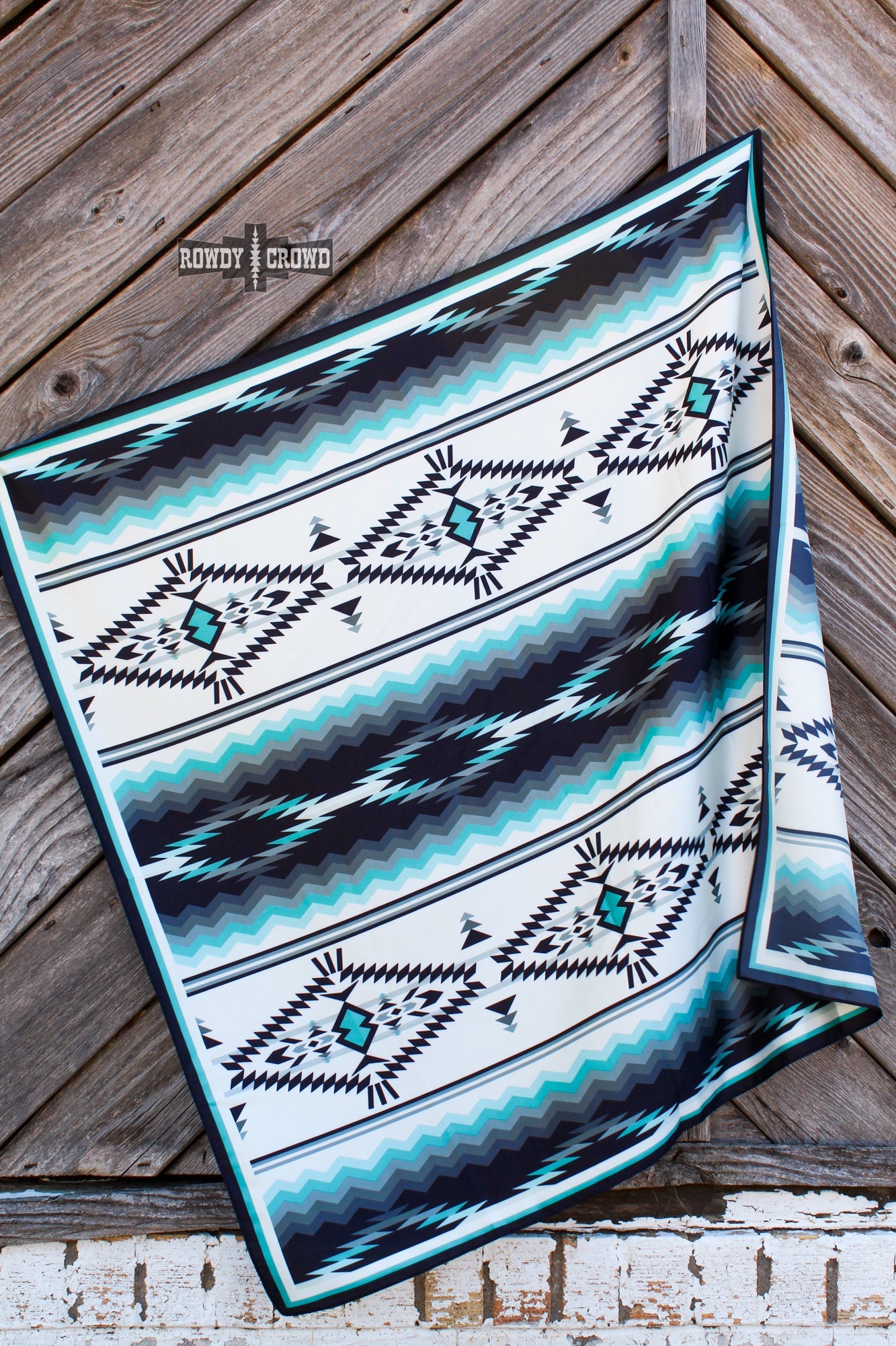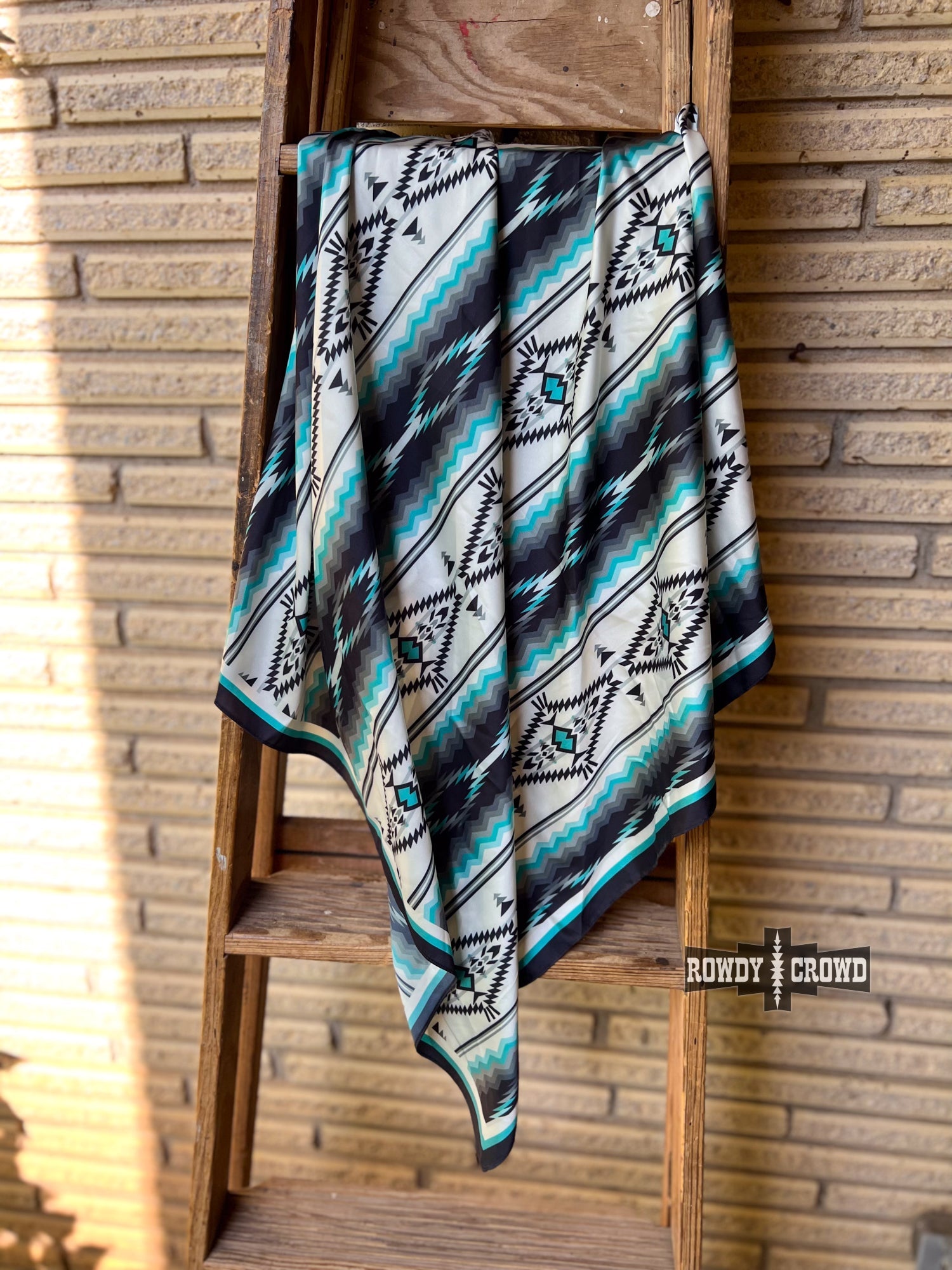 Experience ultimate style and versatility with our Wolf Creek Wild Rag. Featuring a stunning Aztec print in teal, black, and white, this cute accessory can be worn as a top, in your hair, or on your bag to showcase your unique style. Embrace your individuality and make a bold statement with this must-have piece.